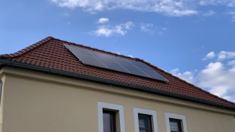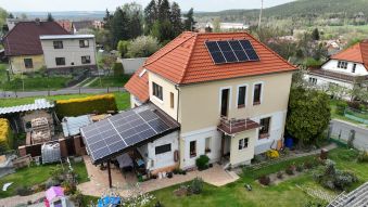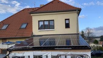 Instalace fotovoltaiky na domek pro výrobu elektrické energie.
